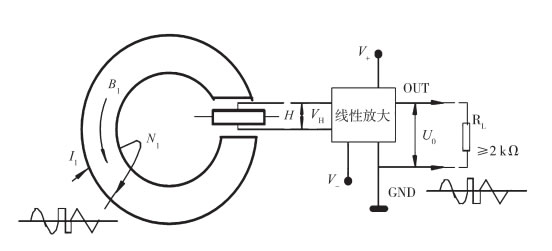 霍爾電流傳感器以霍爾元件為核心,用于隔離檢測電流的傳感器。當(dāng)電流流過一根導(dǎo)線時,將在導(dǎo)線周圍產(chǎn)生磁場,磁場的大小與流過導(dǎo)線的電流大小成正比,這一磁場可以通過軟磁材料來聚集,然后由霍爾元件來檢測,用霍爾元件在磁芯氣隙處感應(yīng)原邊電流IP的大小和方向。霍爾元件的輸出電壓,經(jīng)過信號處理電路,使傳感器的輸出可以反映被測電流的大小。
